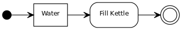 <img src="http://yuml.me/diagram/nofunky/activity/(start)->[Water]->(Fill Kettle)->(end)" >